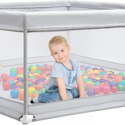 BEJOY Large Baby Playpen, 180*200cm Compact and Strong, Foam Protection, Anti-slip Safety Play Yard with Breathable Mesh Round Zipper Door Kids Activity Centre for Baby and Toddlers Indoor & Outdoor