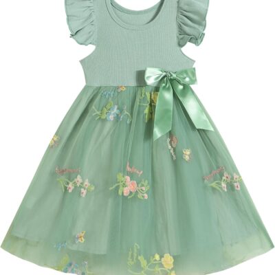 Beganly Girls Tulle Dress Toddler Ruffle Sleeves Bow Princess Party Casual Tutu Dresses