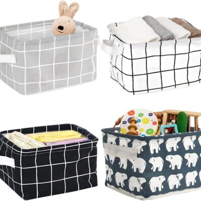 Canvas Storage Box, 4 Packs Fabric Storage Basket Organizer with Handles, 20x16x14cm Storage Boxes, Foldable Fabric with Handles Collapsible for Cupboards Wardrobe Shelves Clothes Toys(4 Colors)