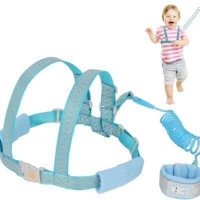 OWill Toddler Reins Walking Harness, 2 in 1 Baby Reins for Walking 1-3 Years Boys and Girls, Anti Lost Wrist Reins with Luminous Effect Induction Unlocking Warning Whistle (1.5m Blue)