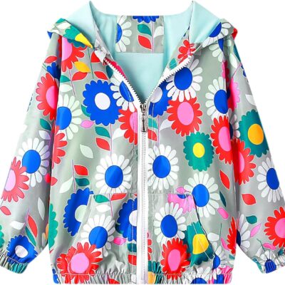 JinBei Jacket Kids Hooded Coat Windbreaker Windproof Zip Long Sleeve Cloak Cartoon Jackets Soft Light Thin Sunscreen Anti-Fog Outwear Gift for Baby Girls Toddler 1-7 Years