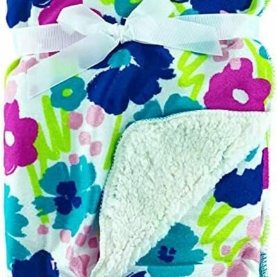 E&A Distribution Limited Newborn Luxurious Soft Baby Blanket Crib Pram Boys Girls Infant Cotton Fleece Fur Back Cot Bed Swaddle Pram Shawl Wrap Toddler Snuggle (Floral)