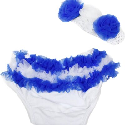Petitebelle Israel Dress Baby Blue White Ruffles Bloomer Headband Set 6-24m