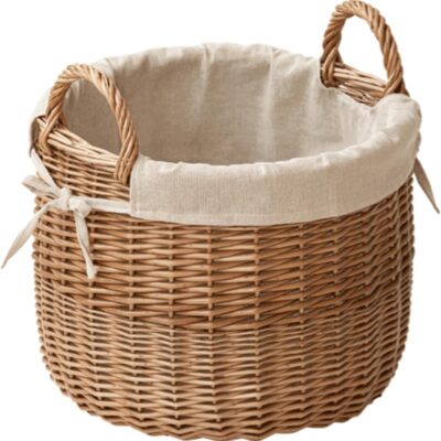 KKXXYQFC Round Wicker Woven Laundry Basket Japanese Style Dirty Clothes Basket w/Handles and Removable Liner Dirty Clothes Laundry Hamper Organizer for Bedroom Washing Basket