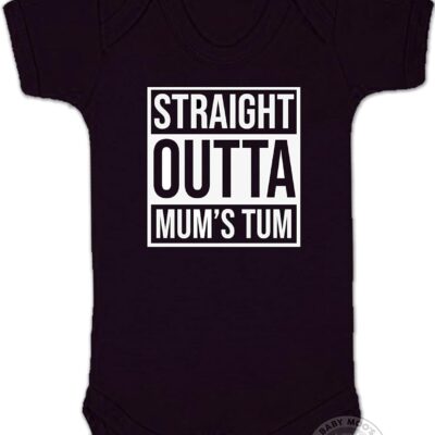 Baby Moo’s Funny Baby Grow STRAIGHT OUTTA Mum’s Tum | Boys or Girls | NWA Inspired Hip Hop Rap Baby Vest/Bodysuit – New Baby Gift Unisex Baby Clothes UK