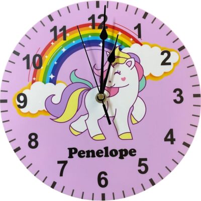 Precision Designs Kids Room Unicorn Silent Clock – Personalised with Any Name – Size 25cm Wall Mountable – Unique Gift