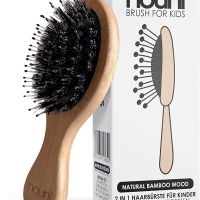 Children’s Bamboo Wood Brush with Boar Bristles | Kids Brush: No Pull | Premium Baby Massage Comb | Hair Brush by nouni