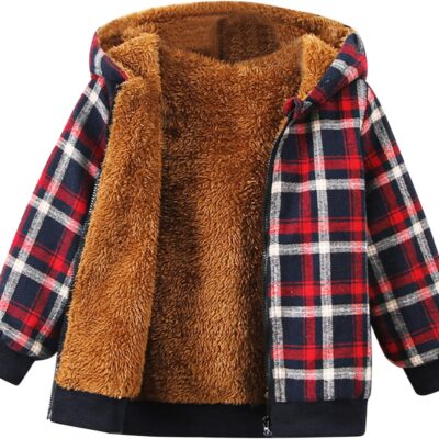 OverDose Boutique Kids Toddler Fleece Lined Warm Shirt Jacket Plaid Long Sleeve Hooded Full Zip Baby Boys Girls Fall Winter Hoodie Shirt Coat Outwear Teen Tee Shirt