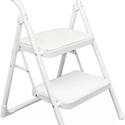 Breakfast Bar Stool:Step Chair for Kitchen Dual Purpose Portable Folding Ladder Chair with Rounded Armrests, Living Room Double Layer Wrought Iron Back Chair, No Assembly Required (Color : W