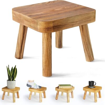 Eden Creations Small Wooden Stool, Plant Stand Indoor Step or Kids Stool – Ideal as a Small Side Table for House Plants, Bedroom Bedside or Bathroom (20cm)