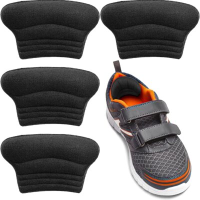 2 Pairs Self-Adhesive Heel Grips, Kids Shoe Inserts, Cute Soft Heel Pads for Loose Shoes, Add Comfort and Volume, Prevent Skin Rubbing and Blister for Toddlers Girls Boys Shoes (Black)