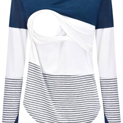 Morydal Women’s Long Sleeve Nursing Tops Pregnancy Maternity Striped Breastfeeding T-Shirt Tunic Tee Top Blouse