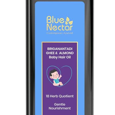 Blue Nectar Ayurvedic Baby Hair Oil with Organic Ghee, Almond Oil, Coconut Oil & Olive Oil for Hair and Scalp (18 Herbs, 100ml)
