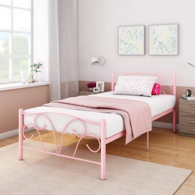 Panana Modern Stable 3FT Single Metal Bed Frame Children Kids Bedroom (Pink 3FT Bed Frame)