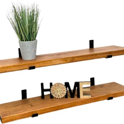 MKGT Rustic Wooden Shelves Wall-Mounted Handcrafted Floating Shelves with Black L Brackets – Ideal for Kitchen or Living Room Decor Tudor Oak Finish (Set of 2, 70 cm Long)