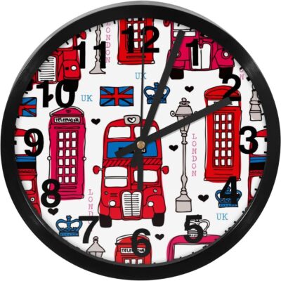 London Love UK Bus Modern Wall Clock 10 Inch Non-Ticking Silent Battery Operated Decor Clock for Home/Office/School/Kitchen/Bedroom/Living Room