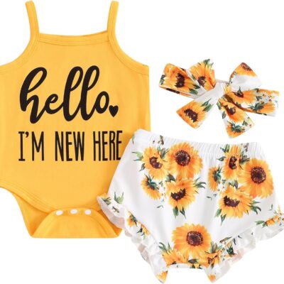 Dubute Newborn Baby Girl Summer Clothes Sleeveless Romper Bodysuit + Floral Bloomers Short + Headband Infant 3Pcs Outfit