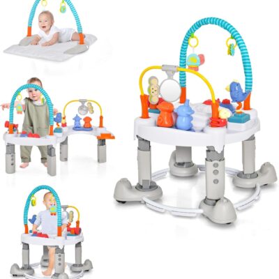 Maxmass 4 in 1 Baby Activity Center, Infant Sit-to-Stand Walker with Music Box, Toy Bar, Playtime Mat & 360° Seat, Height Adjustable Toddler Play Center for 0-24 Months Boys Girls (Grey)