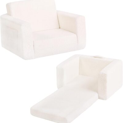 Tiita Kids Sofa, 2-in-1 Toddler Chair, Convertible Children Couch to Lounger, Flip Out Kid Sofas Chair, Toddler Armrest Chairs Bed, Folding Kids Play Sofa for Girl or Boy (Beige)