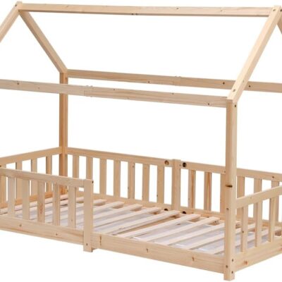 FurnitureHMD Treehouse Style Bed,Solid Pine Wood, Single Bed Frame,Floor Bed Frame for Boys and Girls,Bedroom Furniture (natural)