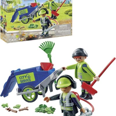 Playmobil 71434 City Action Street Cleaning Team, city cleaning, figures and rubbish bin for pushing along, educational toy, fun imaginative role-play, playsets suitable for children ages 4+