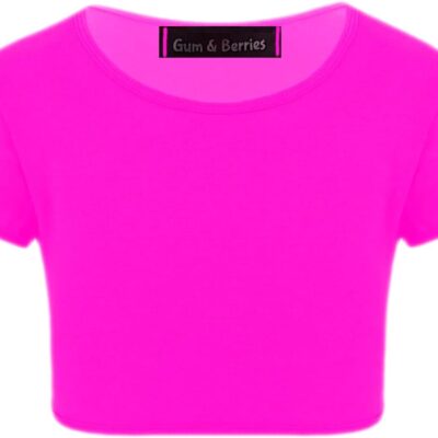 Kids Girls Neon Fluorescent Plain Short Sleeve Crop Tops T-Shirt Tee Top Dance Wear Gymnastic Fancy Dress Age 3-14 Years