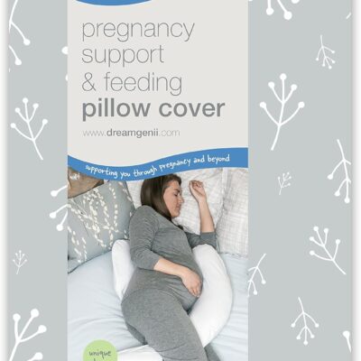 Dreamgenii Pregnancy Support and Feeding Pillow Cover, Floral Cotton Grey/White