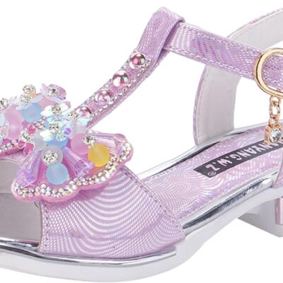 Girl Sandals Glitter Princess Shoes Soft Soles Open Toe with Diamond Bowknot Platform Buckle Heeled Summer Holiday Beach Sandals Wedding Birthday Party Dance Dress Shoes Flats for Little Big Girls