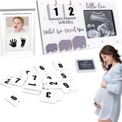 2 Pcs Pregnancy Gifts For Mum Expecting, Baby Hand And Footprint Kit And Baby Scan Photo Frames, Ultrasound Frame Countdown Weeks And Baby Ink Pads For Hands And Feet, Perfect Baby Gift