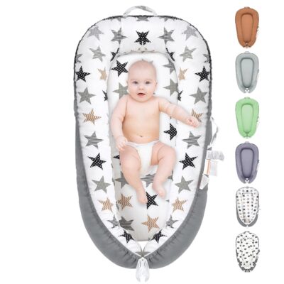 Baby Lounger, 100% Cotton Newborn Lounger for 0-24 Months, Co Sleeping Breathable & Soft Baby Nest, Infant Lounger Baby Floor Seat, Portable Lightweight Lounger Newborn Babies Essentials(Stars)
