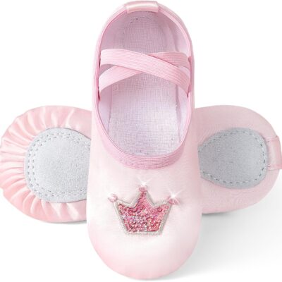 Comfyouth Ballet Shoes for Girls Satin Dance Shoes with Shiny Crown Split Sole Ballerina Slippers No Tie Ballet Dance Flats for Childrens Kids Toddler