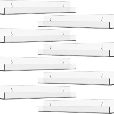 8 Pack Acrylic Shelves, 30.5cm Vinyl Shelf for Album Record Storage & Display, Clear Acrylic Floating Shelves for Wall Photo Decor, Picture Ledge, Kids Bookshelf, Magazine Rack