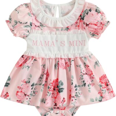 XIXIMAON Cute Baby Girl Summer Clothes Babydoll Collar Short Puff Sleeve Letter Embroidery Ruffle Romper Dress Mamas Mini Floral Jumpsuit Toddler Outfits