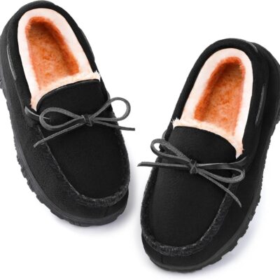 MIXIN Boys House Slippers Memory Foam Moccasin Shoes Furry Plush Lining Non Slip Indoor Outdoor Boys Slippers for Big Kids Little Kids