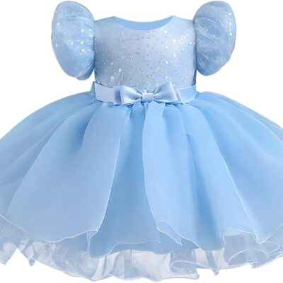 JEATHA Baby Girls Sequin Ruffled Tulle Bowknot Tutu Princess Dress Kids Flower Party Pageant Gown