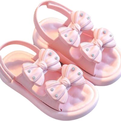 Baby Infant 𝗣ink Bow Pearl Foam Sandals With Strap Summer Casual Toddler Girls Flat Wide Shoes Slip On Shower Loafers Baby Girl Glitter Shoes 0-3 Months Toddler Sandels(Red, 13.5 Little Child)