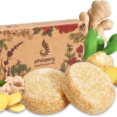 PHOGARY 2PCS Ginger Hair Shampoo Bar – Organic Ginger Hair Soap Various Plant Essence Shampoo Natural Hair Care with Plant Extracts, Moisturizes Hair and Cleans Scalp Pores Anti Dandruff 3.88 oz