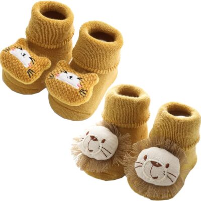 2 Pairs Baby Non Slip Socks 3D Cartoon Animal Anti-Skid Winter Thick Warm Booties Sock Slippers for Newborn Infant Toddler Boys Girls