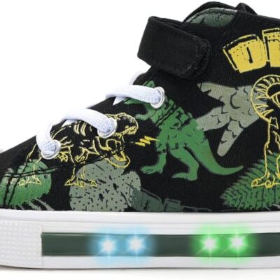EUXTERPA Kids Light Up Trainers, Boys Girls High Top Pumps Flashing Sneakers Toddler Easy Fasten Canvas Shoes