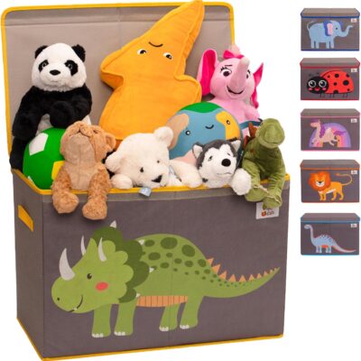 OLIVE&OSCAR 80L Toy Box | Toy Storage | Kids Toy Box Storage with Lid & Handles | Suitable for All Children, Boys, Girls,Toddlers & Baby | Large | Green Dinosaur | L60cmW33cmH40cm