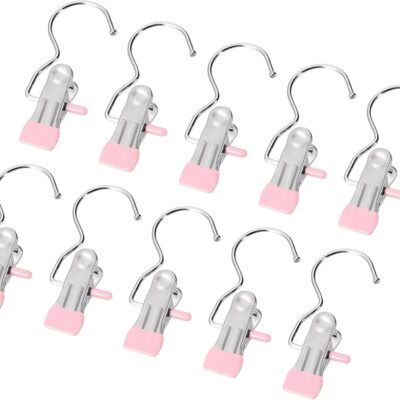 sourcing map 16Pcs Boot Hangers, Stainless Steel Laundry Hanging Hooks with Clips Portable Clothes Pins for Closet Organizer Travel Drying, Pink