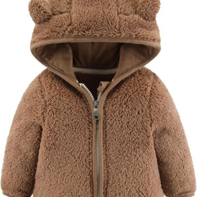 2024 Christmas New Newborn Infant Baby Girls Boys Jacket Bear Ears Hooded Outerwear Zipper Warm Fleece Winter Coat Boys Sports Coat Size 6 (Coffee, 12-18 Months)