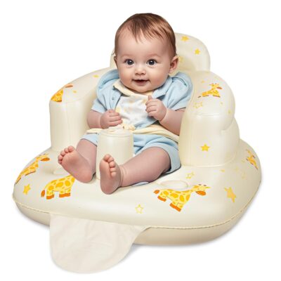 JOSEN Inflatable Baby Seat for Babies 3 Months & Up, Baby Floor Seats Learn to Sit Up, Portable Infant Feeding Shower Chair, Blow Up Baby Chair with Built in Air Pump – Giraffe