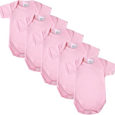 Baby Bodysuits, Baby Vests, Newborn Vests, Cotton Short Sleeved Newborn Bodysuit, British Made for Boys or Girls, 5 Pack