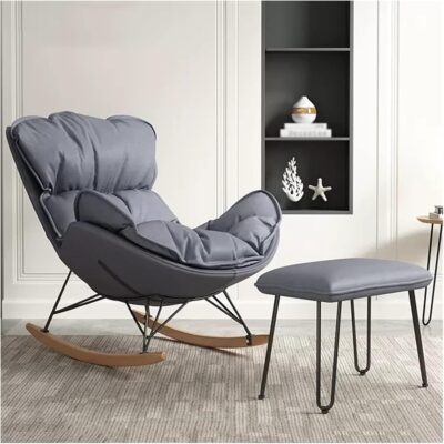 Modern Nursery Rocking Chair with Ottoman Comfy Velvet Glider Sofa Armchair for Living Room Thick Cushion Gray Color