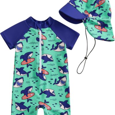 Geagodelia Baby Boy Swimming Costume Infant Boys One Piece Swimsuit Short Sleeve Bathing Suit Summer Sun Protection Rashguard