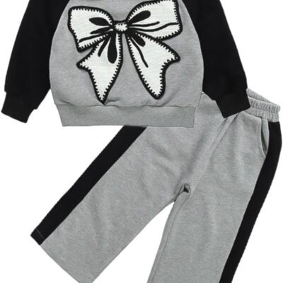 Valcatch Kids Girls Outfits Clothes Set Cute Bowknot Print Contrast color Long Sleeve Cotton Shirt Jumper Pullover Tops Sweatshirt Pants Spring Fall 2 Piece Clothing Set 3-9 Years