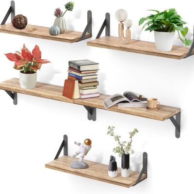 Homvvi Floating Shelves Set of 5, Rustic Wood Wall Shelves,Wall Mounted Shelf with Easy Installation, Multi-Purpose Shelves for Wall Storage, Hanging Bookshelves