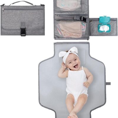 Portable Source Pads for Portable Nappy Care Pads Waterproof Changing Pad Pocket | Foldable Travel Dressing Station with Large Capacity Fits, grey, Se référer au descriptif