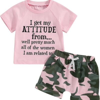 HZPHQY Kids Baby Girls Letter Print Short Sleeve T-Shirt Tops Camouflage Pattern Shorts Toddler Infant Girl Summer 2 Pcs Outfit Clothes